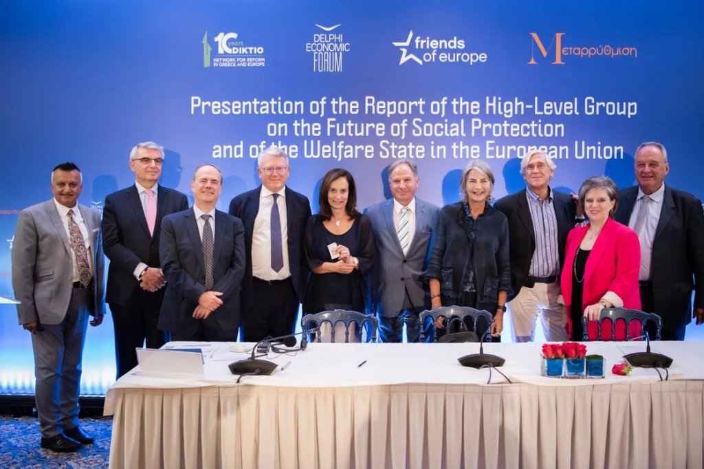 As part of the Athens presentation of the EU Report on the Future of Social Protection & the Welfare State in the EU of the High Level Group chaired by Anna Diamantopoulou, Professor Bernhard Ebbinghaus discussed the two main goals to provide social secruity for all and how to apply a life-course social investment strategy. Given the mega-trends of flexible work, digitalization, and green transition, European welfare states should aim at social security for all, including the atypical employed, platform workers, and self-employed. Also population ageing and migration shifts make it necessary to increase overall employment and raise the pension age with life expectancy. Professor Ebbinghaus argued the need to invest early in young people and foster their indepenence, helping them master the new world of work. Furthermore, continued VET, work-family reconciliation, and active ageing policies are crucial to achieve the goals of full employment. In the precence of HE the president of the Hellenic Republic, EU Commissioner Schmit and the Greek labour minister, the deliberations in Athens centred on the situation in Greece and how to apply the 21 recommendations of the EU report (europa.eu/!dXybFh).